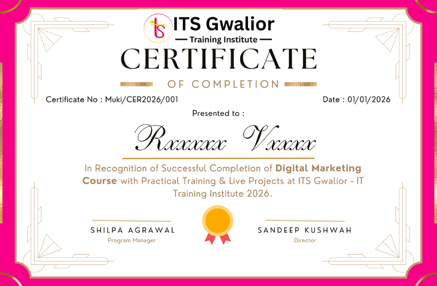 ITS Gwalior is a premier IT training institute in Gwalior, established in 2012. We provide 100% practical, job-oriented courses in Digital Marketing, Graphic Design, and Web Development. Our curriculum is designed by industry experts to ensure students master skills like SEO, Social Media Marketing, UI/UX Design, and Full-Stack Development. With a focus on real-world projects and placement assistance, we have helped thousands of students kickstart their careers. Whether you are a student or a professional, join Gwalior's most trusted institute for high-demand digital skills. Visit us for a free demo class today! Click Here